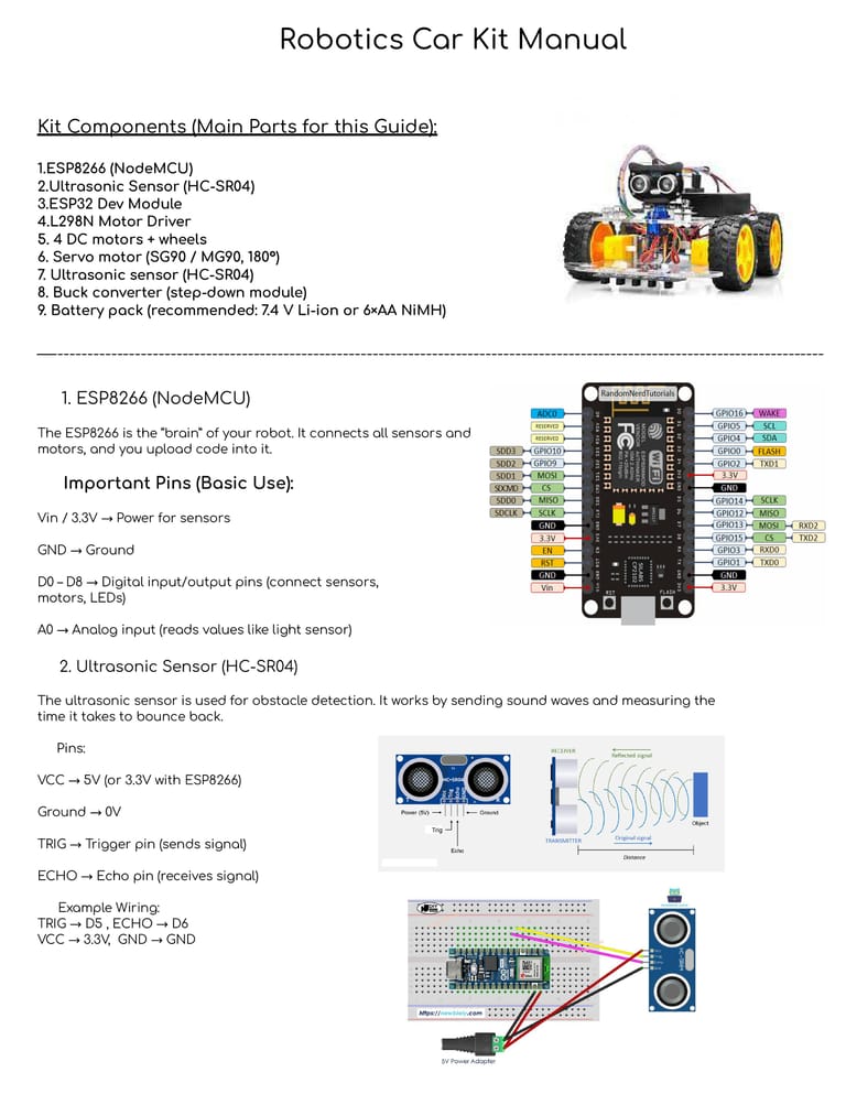 The Robotics car Starter Kit (ESP32 Edition) is the perfect all-in-one bundle for beginners, students, and hobbyists who want to explore the exciting world of robotics, electronics, and coding. Unlike traditional kits that only provide parts, this kit comes with free codes, tutorials, and a step-by-step guide manual so you can start building right away — even with zero prior experience.